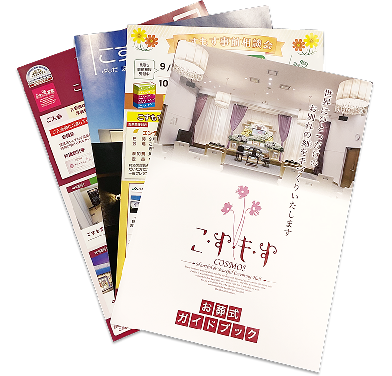 事前相談ではご家族様のご希望やご相談を丁寧にお伺いする事が出来ます。その物語から私たち「こすもす」のスタッフが世界で一つだけのお別れの刻を提案いたします。
