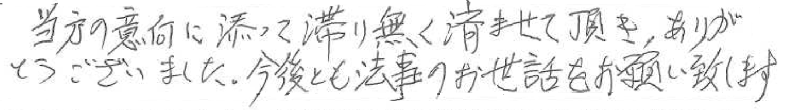当方の意向に添って滞り無く済ませて頂き、ありがとうございました。