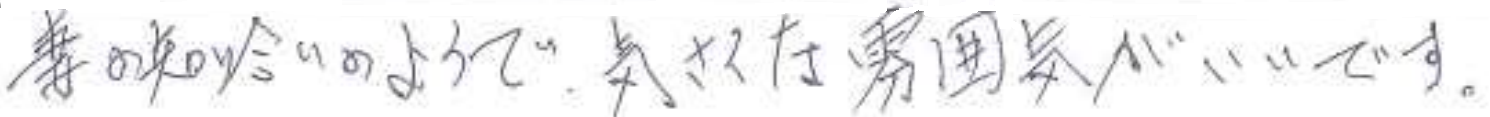 妻の知り合いのようで、気さくな雰囲気がいいです。